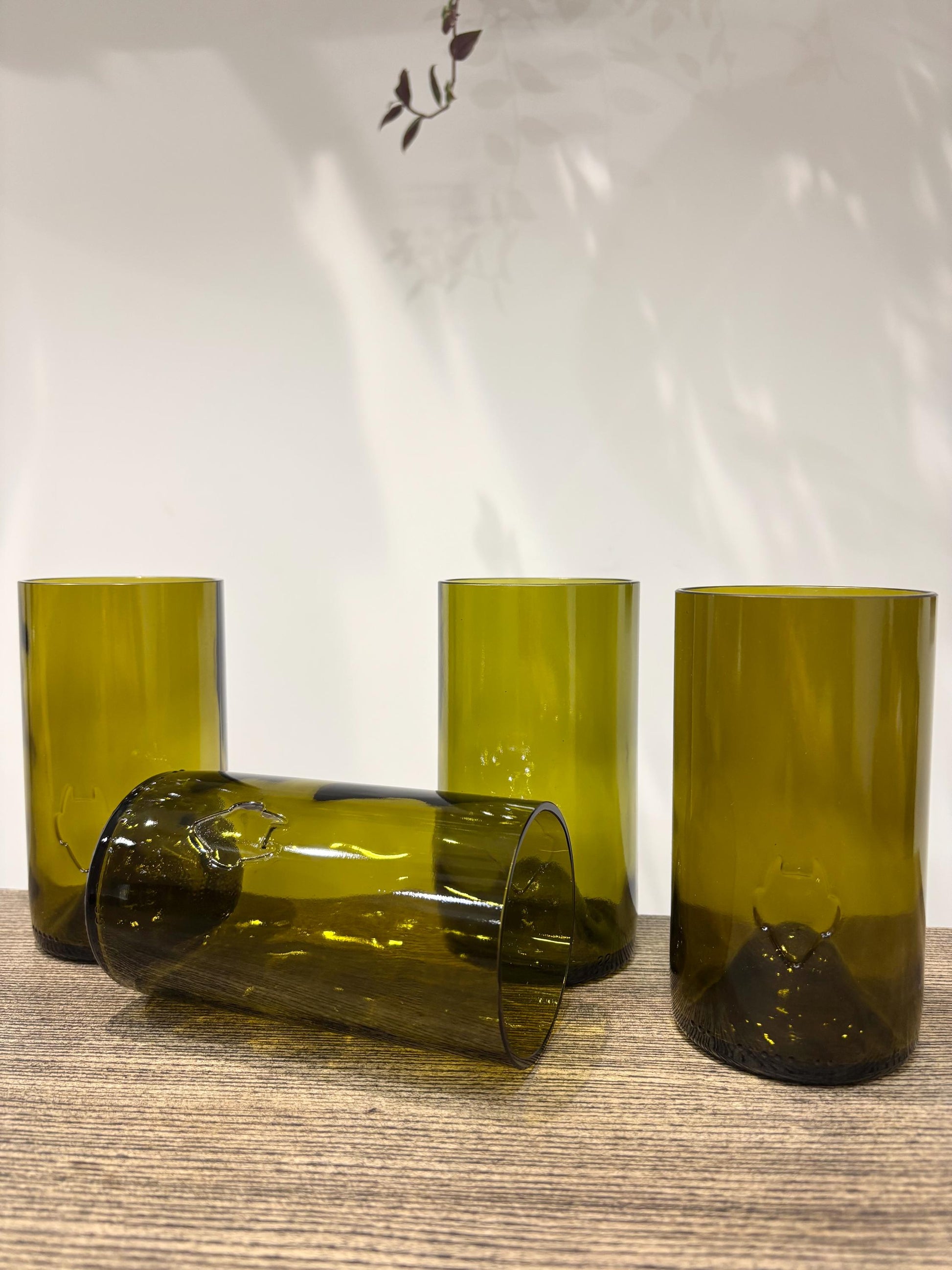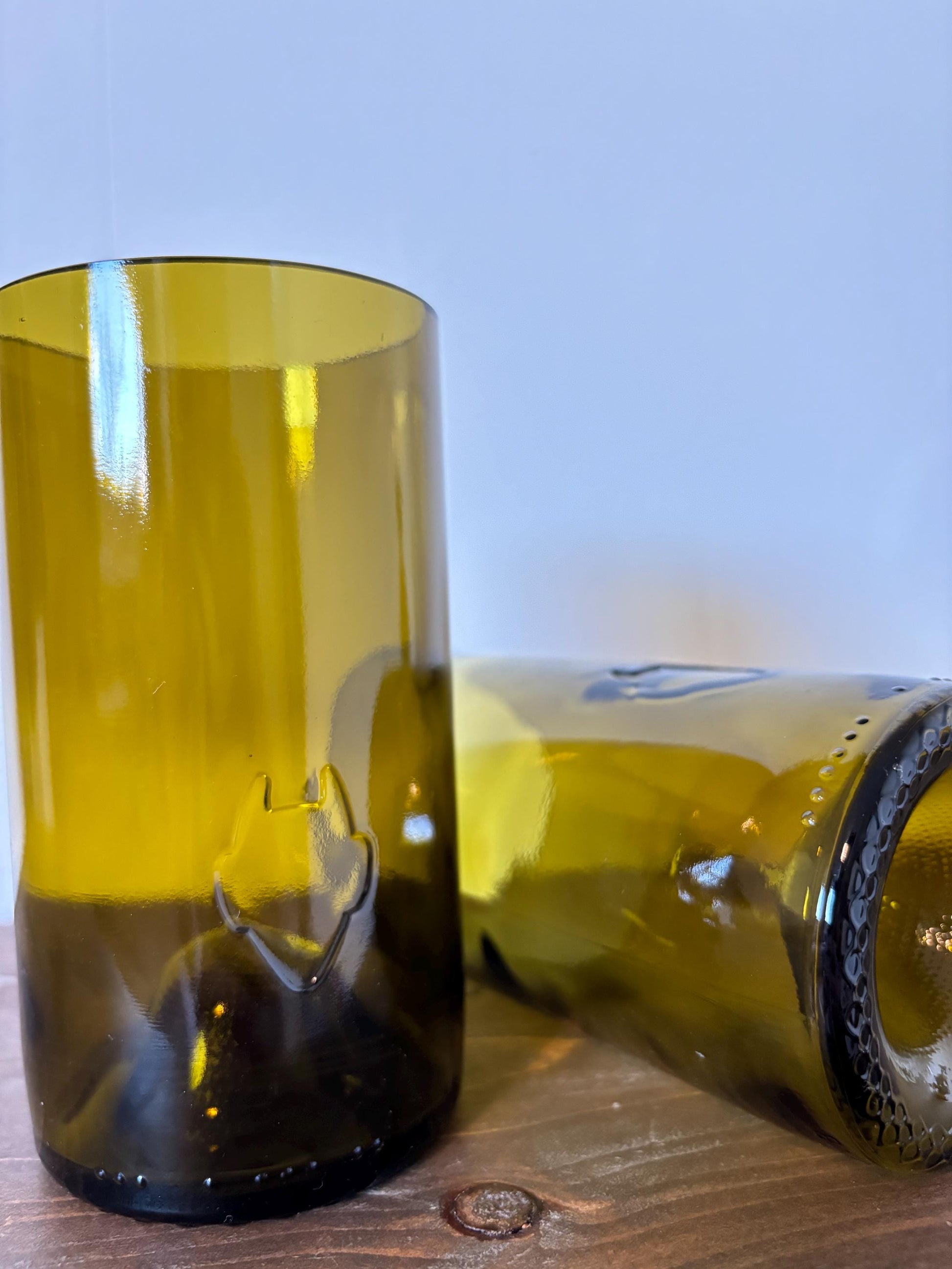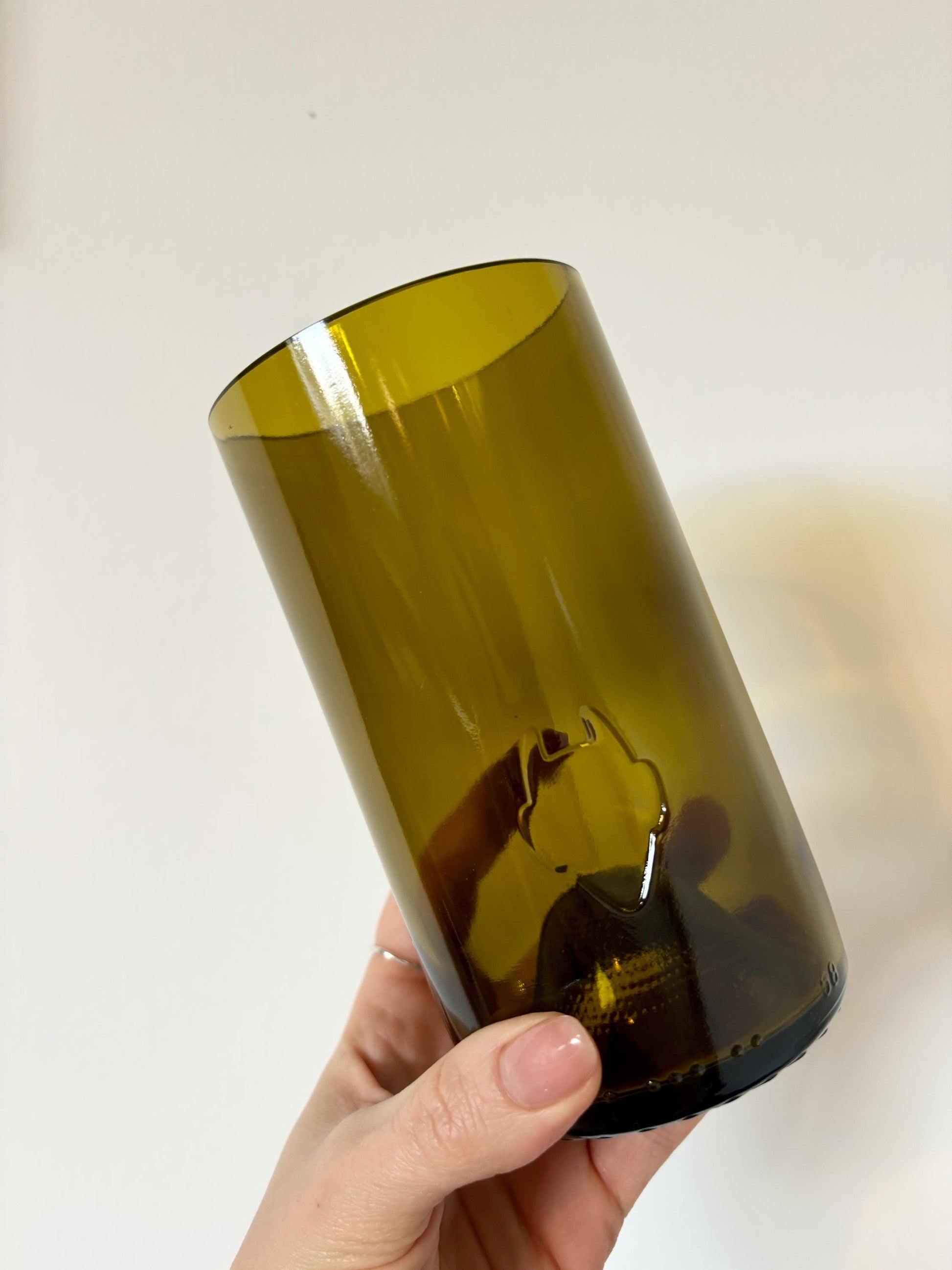 Please be aware that whilst these glasses are lovingly handmade to a very high standard, they are made from recycled bottles and therefore every glass is unique and may come with very slight imperfections. Imperfections may include variations in the plugs and patterns on the bottom of the glasses.